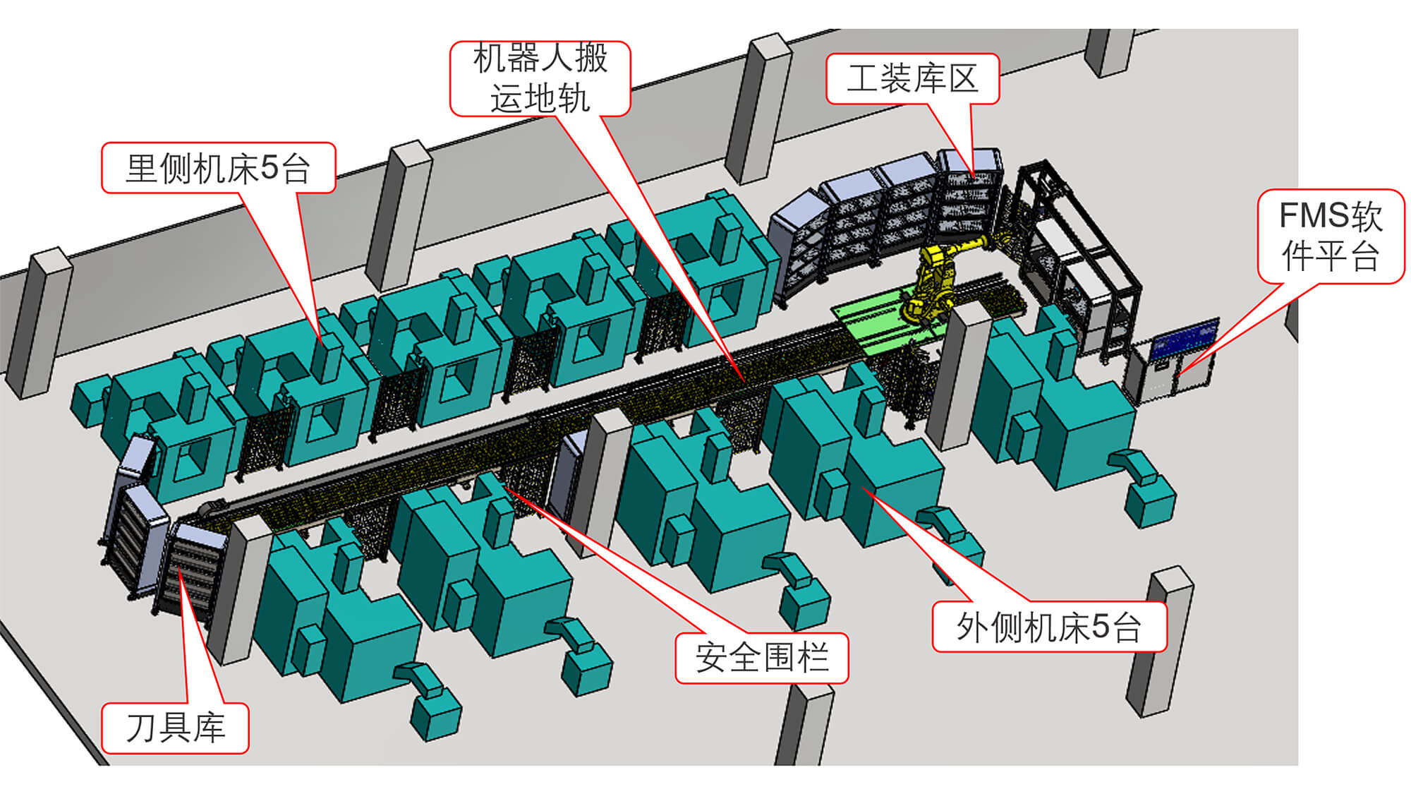 4臺(tái)機(jī)床、4個(gè)工裝料庫,一套柔性化系統(tǒng)組成