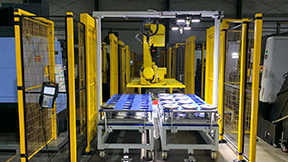 生產(chǎn)工藝涵蓋了從毛坯自動(dòng)分揀,機(jī)器人自動(dòng)上下料,打碼掃碼,信息追溯,自動(dòng)下料,檢查等全系列加工工藝范圍